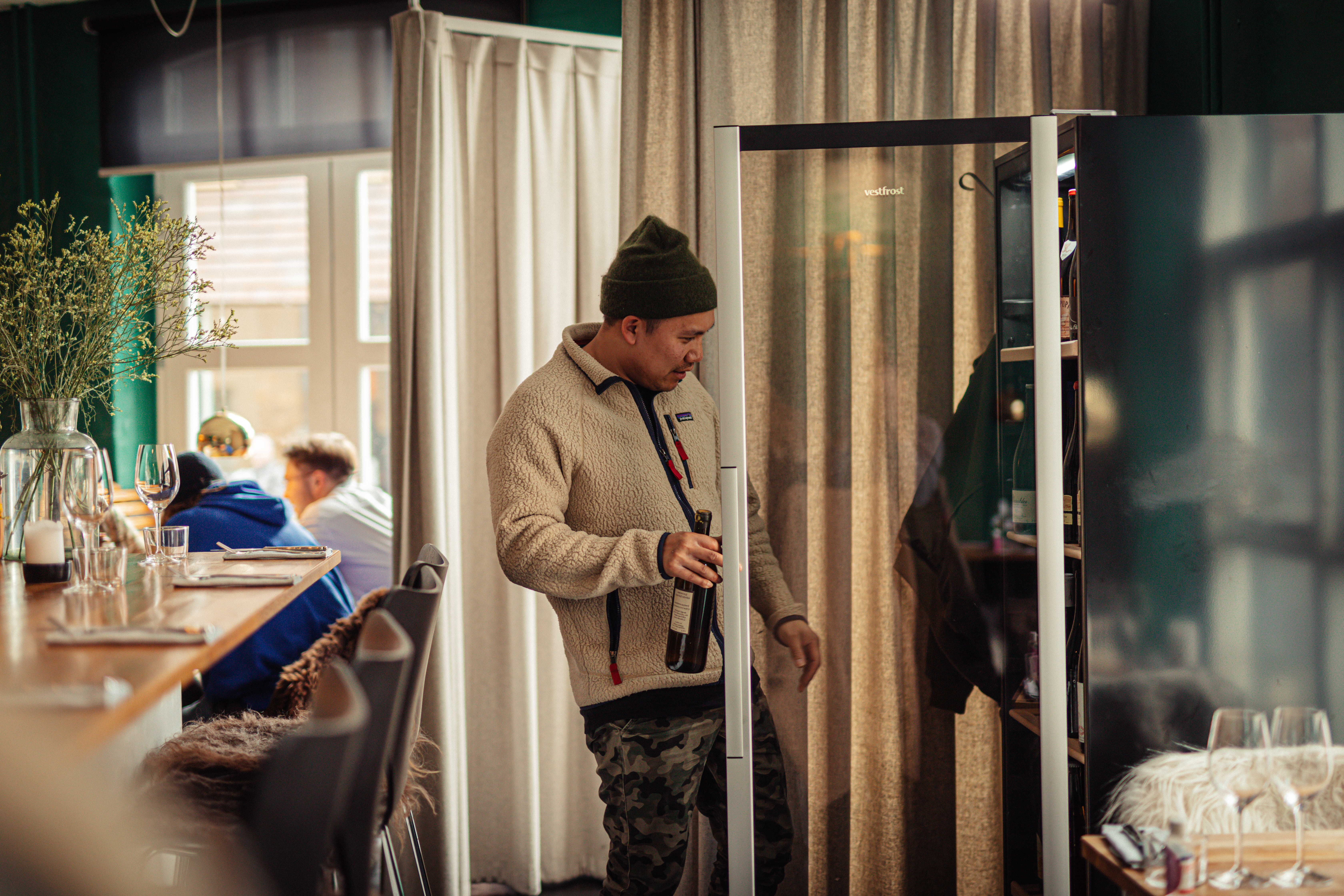 Som is the Restaurant Manager at Restaurant Møf, which was one of the first restaurants in Aarhus to serve and select natural wine to go with their menus. The food is in touch with the season, and thought out by the creative minds in the kitchen. You get honest food with local ingredients inspired by flavors and creations from all over the world. With a creative and modern kitchen, the wine naturally has to support both the dishes and the vibe.